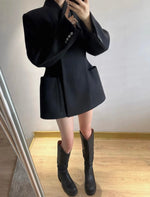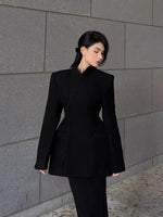 La Veste Croisée Sculpturale – Laine est une pièce manifeste : coupe architecturale, découpes latérales qui révèlent la taille et col montant affirmé. Plus qu’un vêtement, une armure contemporaine qui redéfinit les codes du blazer.